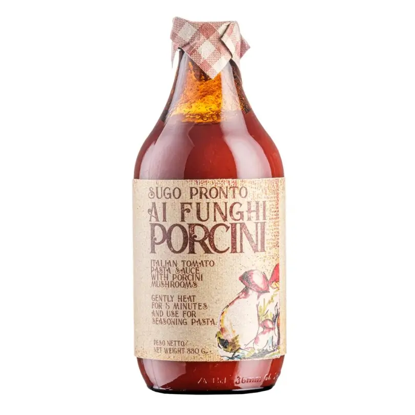 - Zutaten: Tomatenpulpe (Herkunft: Italien), Olivenöl, Steinpilze (Boletus Edulis), rote Zwiebel, Salz, Knoblauch, Petersilie, Säureregulator: Zitronensäure